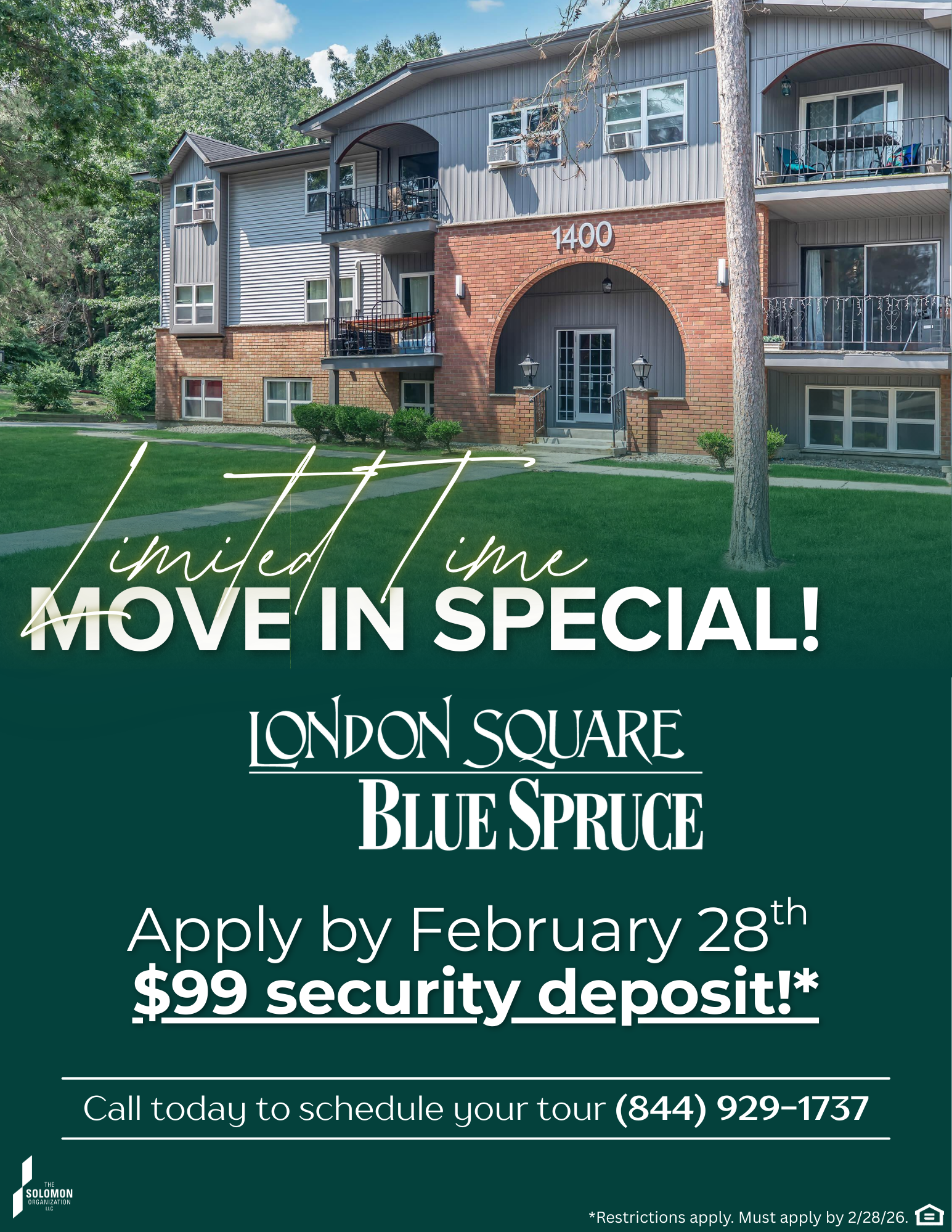 Apply by February 28th and receive a $99 security deposit!*