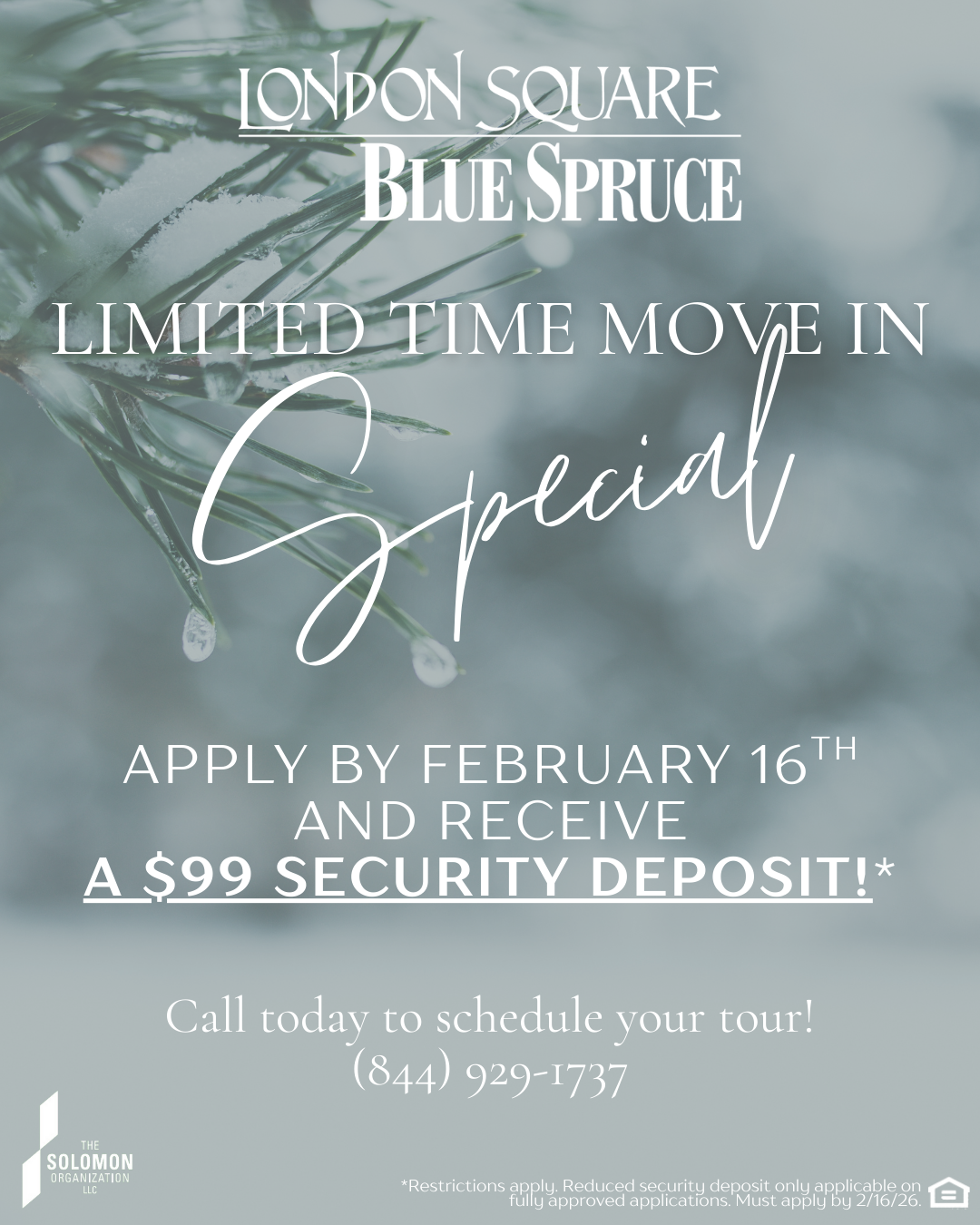 Apply by February 16th and receive a $99 security deposit!*